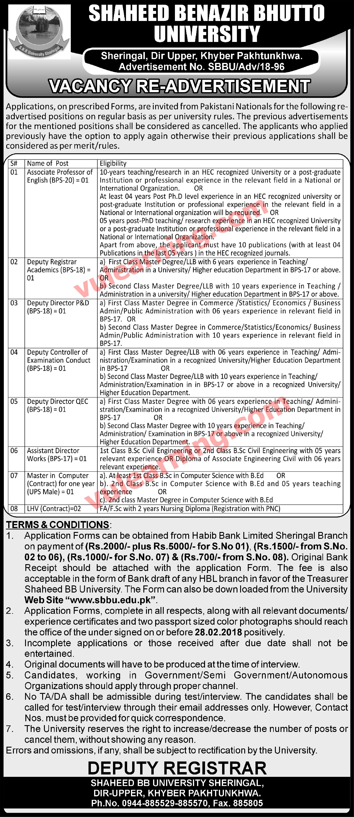 Shaheed Zulfiqar Ali Bhutto University Upper Dir need services of Civil Engineer for post of Assistant Director Woks.Further Details are given in link