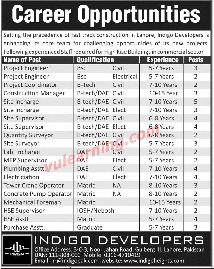 A Private Construction company need services of Electrical /Civil Engineers for its projects situated in punjab/gilgit/kpk.