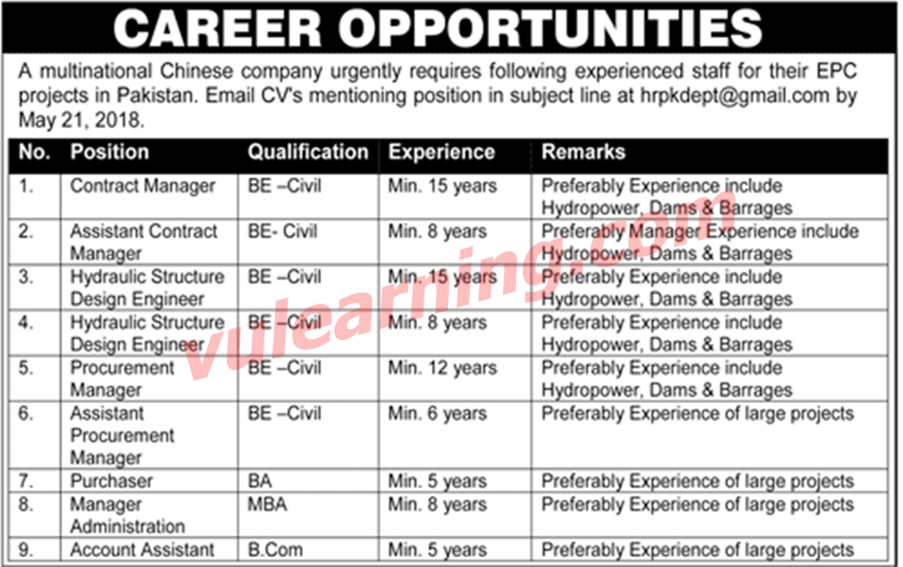 A Pakistan based construction company is seeking services of civil engineers
